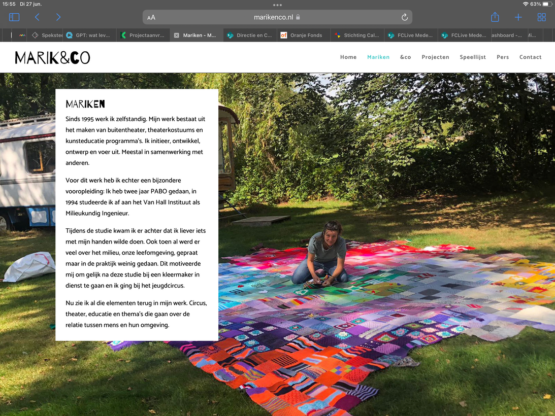 ‘Mariken Biegman is creatief kunstenaar in alles wat ze doet, buitentheater, theaterkostuums en kunsteducatie programma’s.